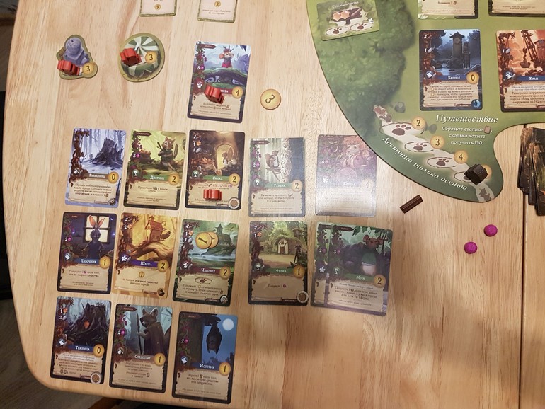 Реиграбельность вполне на уровне. Локации выкладываются случайным образом. В одной партии у вас куча ягод, но нет камней и проблема скинуть карты и получить новые. А в другой дефицит ягод, зато меняй-не хочу карты в любых вариантах. А уж случайный приход карт вообще делает все партии разными.