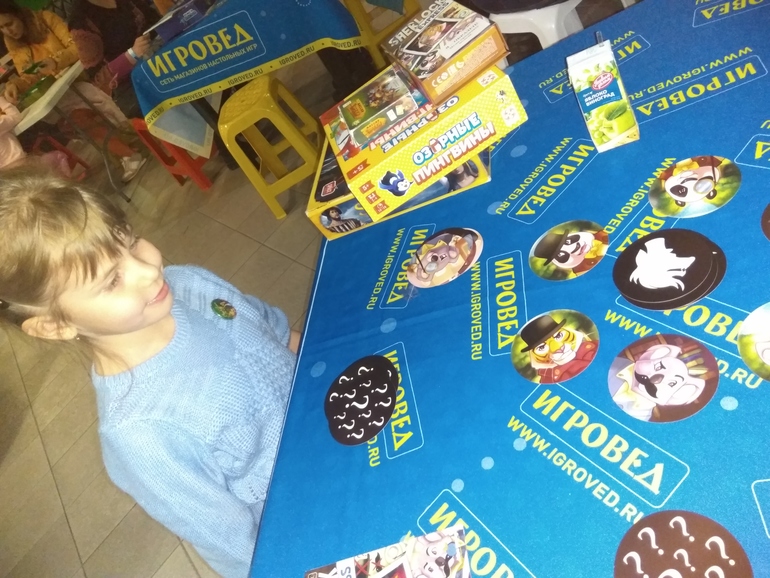 Ещё было много всего и раскладка 7 чудес дуэль,но поняли что понять что-то не сможем на игротеке,нужно больше времени.Было и мороженое,и аквагрим,и турнир для дочки,и в игру дочь играла (новинка у игроведа Живые истории) и победила.Очень необычная,но дочке особенно не впечатлилась.Муж поучаствовал впервые в турнире, сказал,что в следующий раз пойдет только если будет уже знать игру,так как правила дообьясняют по ходу и выиграть не имея полной картины проблематично.В общем наш игровой день удался...