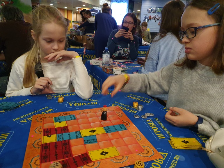 Второй момент, который мы учли - не брать игры со сложными правилами. На прошлой игротеке я и дочь львиную долю времени потратили на изучение правил МагоМаркета :)