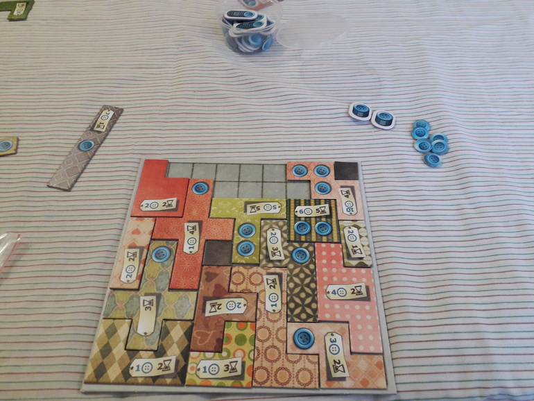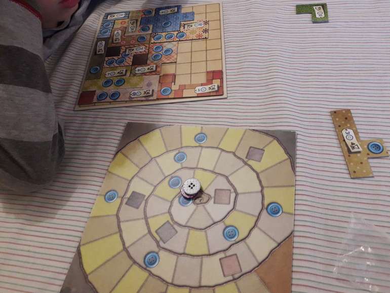 Потом мы засели играть. Сыграли в "Пэчворк". Обожаю эту игру! Когда-то чуть не прошла мимо, настолько меня отталкивала бурая коробка и какое-то неказистое, на мой взгляд, исполнение. Хорошо сын уговорил купить. Наверное, "Листопад" сын любит больше, но в "Пэчворк" сыграть никогда не откажется. А я увидела у него прогресс, даже взять последние 3 месяца. В этот раз играли разными тактиками (так случайно получилось): сын налегал на тайлы с пуговицами, я-на большие тайлы. В итоге у меня меньше дыр, но у него много пуговиц, которыми он расплатился и обогнал меня на пару очков. Планшет Сани