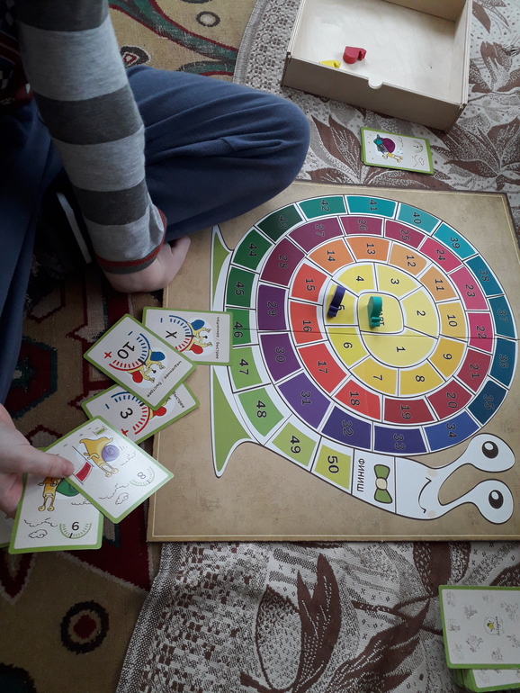 Игра-рекордсменка -"Со скоростью улитки". Я шучу, что у Сани с дедушкой турнир. Чуть ли не каждый день играют. А всё потому, что "она полезная, счёту и логике учит" и "она нормальная, меня не раздражает".