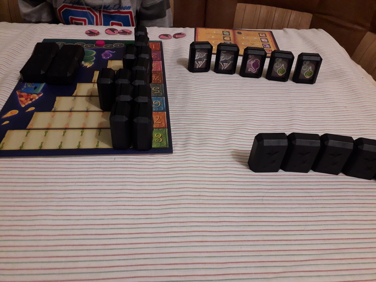 У игры замечательная тематика и крайне оригинальная механика-пробовать догадываться, какие у тебя есть заклинания, зная точное количество заклинаний каждого вида, видя фишки соперника и не видя свои.