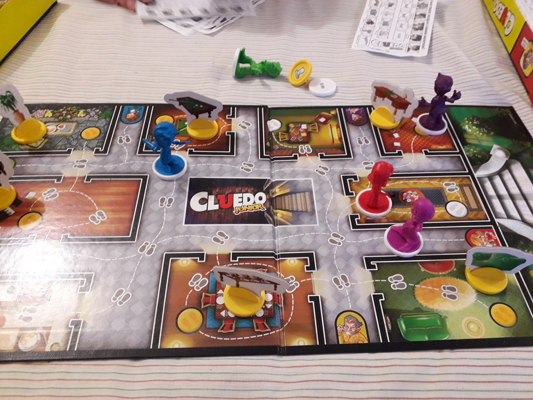 Играем с удовольствием. В этот раз сыну не везло (да, он играет розовыми фишками, потому что розовый-это почти красный, а красный-его любимый цвет. Иными фишками, если красные есть, он играть не будет).