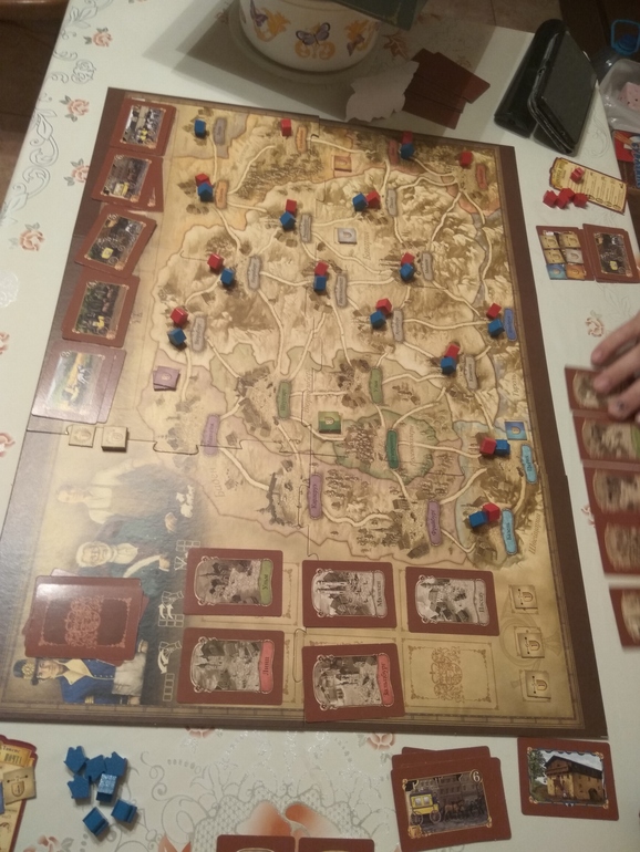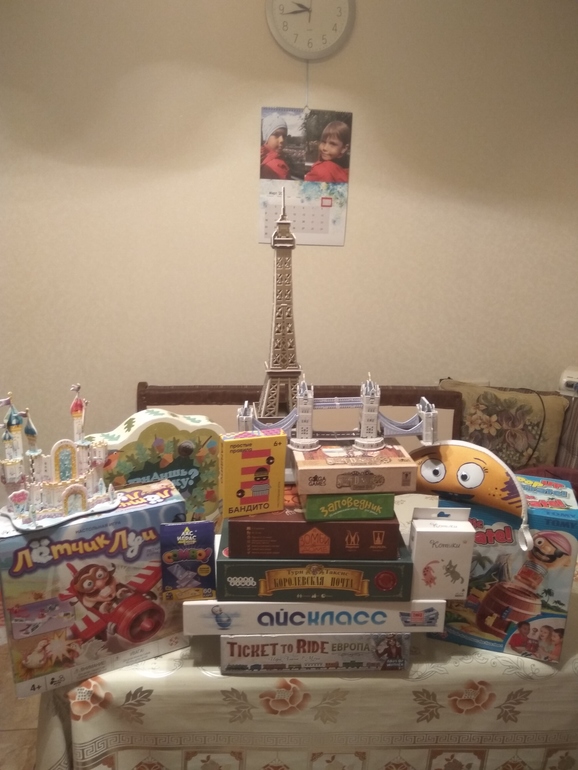 Ну и последней игрой для собравшихся стал Билет на поезд. Мы с младшим сыном уже вернулись и наблюдали за игрой.Гостям было тяжело.Они строили только по одному маршруту и только потом переходили к следующему.И вагончики набирали строго по порядку пути.В результате один гость устал и решили подсчитать очки.Выиграл сын.