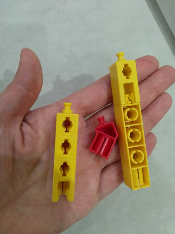 Детали чем-то на Лего Техник похожи. Мне кажется, это для деток постарше, кому уже просто из Лего собирать легко и хочется чего-то посложнее. Ну и да, чтобы что-то интересное собрать (как на фото второго набора) нужно много деталей. У нас такого не было, но присмотрюсь- большой набор может заинтересовать старшего сына. Оля, а сами детали легко скрепляются? И насколько прочно?