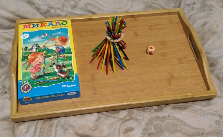 Микадо. Если честно, мне игра ещё год назад казалась слишком малышковой, но сын частенько ее выбирает. Пересмотрела я свои взгляды на нее, когда Витюшка, узнав о разной ценности палочек (например, красная приносит 2 очка, а черная - 20), начал требовать произвести правильные подсчёты. Пыхтит, старается и двойками считать, и десятки прибавлять. Очень эффективное знакомство с математикой выходит!