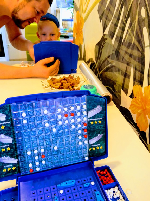 Морской бой. Когда сын в 4.5 года прямо-таки выпросил у меня эту игру, я была уверена, что ему ещё рано. Как же я ошибалась! Энтузиазм творит чудеса! Три партии с подсказками папы и вот уже он совсем не путается во всех этих Ж6, Е8, З3))) Конечно же 5 лет - это ещё возраст ролевой игры, поэтому сидя за планшетом сын реально чувствует себя адмиралом, отражающим нападение вражеского флота))) И пароль, открывая планшет, набрать не забывает, и отпечаток пальца, и сетчатку глаза отсканировать))) из минусов - доооооолго… обычно играем партию в два подхода: немного утром, немного после тихого часа.