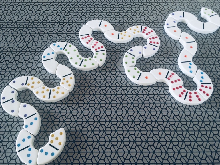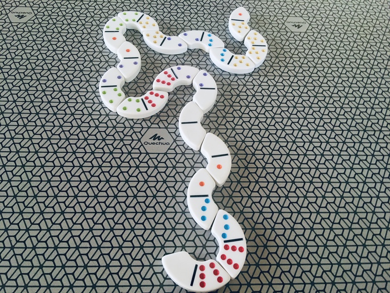 После игры в хекмек захотелось ещё что-то подобное, Бендомино подошло идеально. Обожаем эту игру. Простая, но до чего же приятная и глазу, и рукам. Сыграли 7 партий подряд. После одной остановиться не представляется возможным. А эти причудливые формы, напоминающие змей, любуюсь каждый раз получившейся дорожкой.