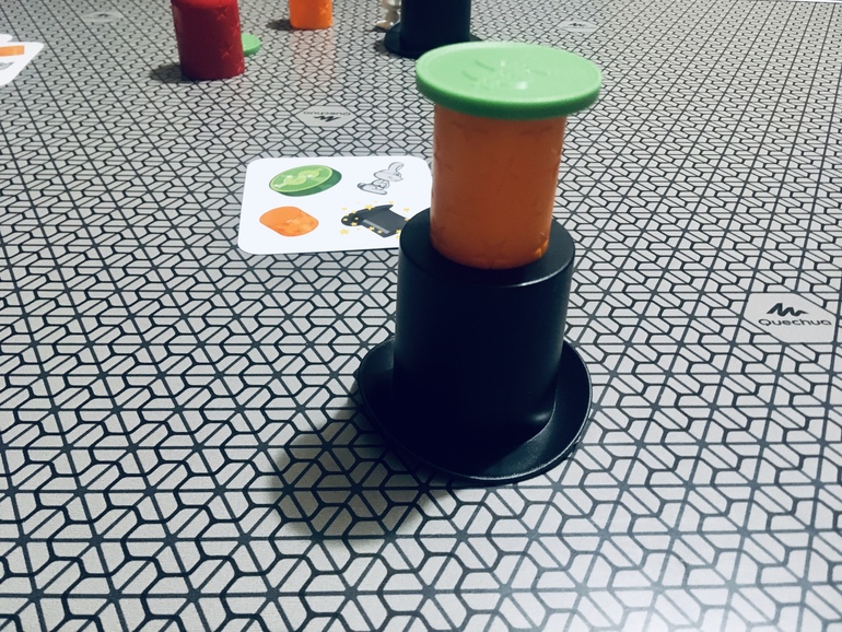 Сыграли две партии. Но в этой игре дочка очень тяжело справляется. Хотя колпачки одна из наших первых игр на скорость, ни у кого из детей в них играть не получается быстро. Но всё равно любят, достают, играют.