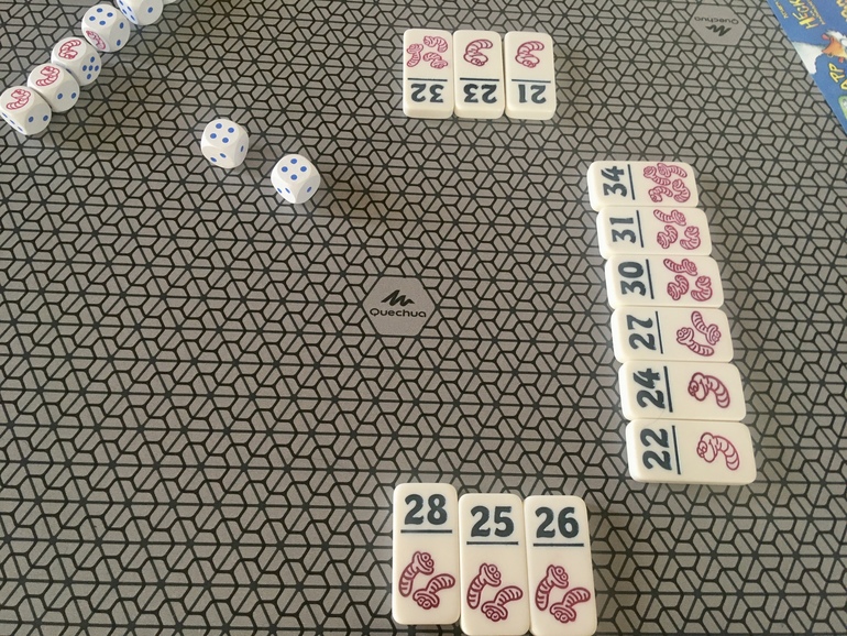 Играли с сыном первый раз. Ему понравилось. Сказал, не ожидал, что игра такая интересная. Червячки вызвали особое внимание, сыну чудным образом везло каждый раз с кубиками. Он и выиграл.