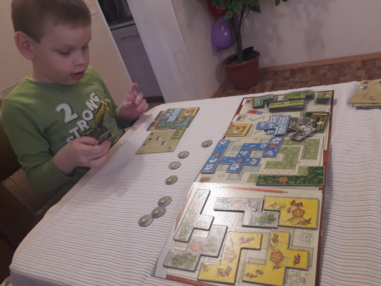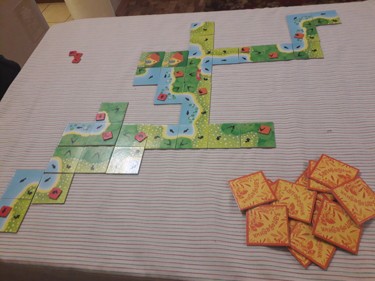 А вот "Заповедник" мне искренне нравится. Хотя я была уверена, что игры с тайлами я не люблю. И всё-таки купила я "Каркассон", в версии "Охотники и собиратели". Пока играть с сыном не планирую, обходимся "Заповедником".