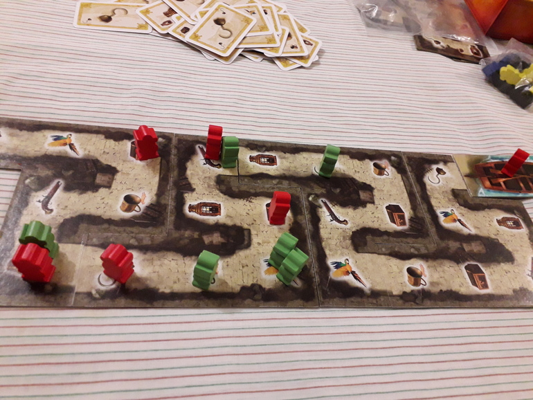 Следующие две игры достаются у нас не слишком часто. "Картахена"-по понятным причинам. Сын не понимает, как действовать, чтобы выиграть. Кого выгодней двигать. Да и вдвоём мне играть в неё скучно. Поэтому с ним я играть в Картахену не люблю. Но если просит-составляю компанию. Вчера так усердно следила за его картами и как он играет, что сама проиграла.