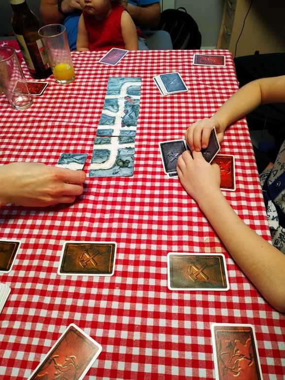 Первая партия была ознакомительная для гостей, да и мы в неё играли всего два раза. Несмотря на это наш друг победил, младшая семилетняя дочь играла с нами и заняла третье место, ну а мы с мужем были в самом конце по очкам. Вторую партию я уже играла по-другому, старалась во второй фазе угадывать действия других игроков, и думаю благодаря этому набрала больше всех очков и победила. Игра всем понравилась, было бы больше времени, сыграли бы снова.