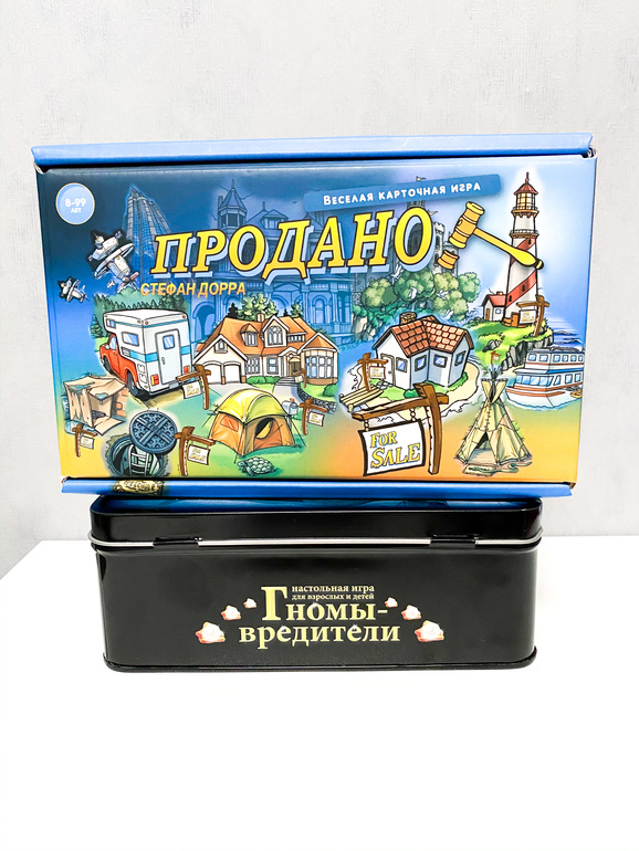 Сначала сразились две партии в Продано. Вижу в ней одни плюсы: быстрая, увлекательная, есть где посмеяться, есть где подумать, легкая в освоении, дешевая.