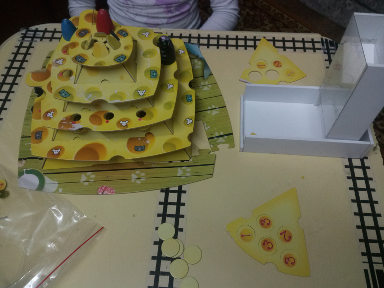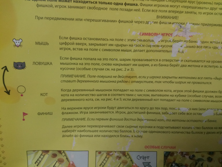 Ну, что сказать про игру. Разбирать я ее пока не буду ибо чую, что несколько раз туда-обратно и придется ее склеивать. Случайно шарик в ловушку не упадет, его надо специально провести над отверстием. Это удручает. Правила я вообще не вкурил сначала насчет символов кота и ловушки. Пока не понял, что это опечатка.