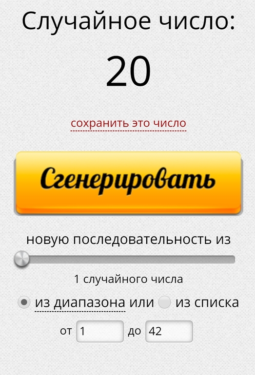 42 номера мы раздали, а подарок только один (но зато очень полезный). Поэтому снова запускаем генератор случайных чисел, которому и доверим выбор счастливого обладателя дайс-трея.