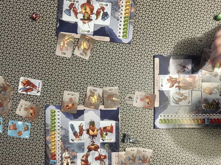 Уже писала я об этой игре подробно. С сыном наиграли очень много партий. Сегодня решила попробовать предложить нашему гостю. Название сразу заинтриговало , и мы втроём, я и мальчики , приступили. Сыграли две партии подряд. Это был фурор. Столько эмоций, разговоров, реплик, печальных вздохов, радостных криков. Я знала, я чувствовала, что игра просто не может не понравиться. Наш друг сказал, что тоже ощущения, как будто всё происходит на самом деле и ты и есть этот робот или управляешь им. Сказал, что переживания и волнения, как будто все здесь и сейчас, и забываешь на это время о том, что находишься в комнате и это всего лишь игра. Те же самые ощущения и у меня , и у сына. Выиграли сначала сын, потом я.