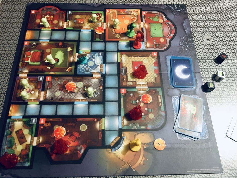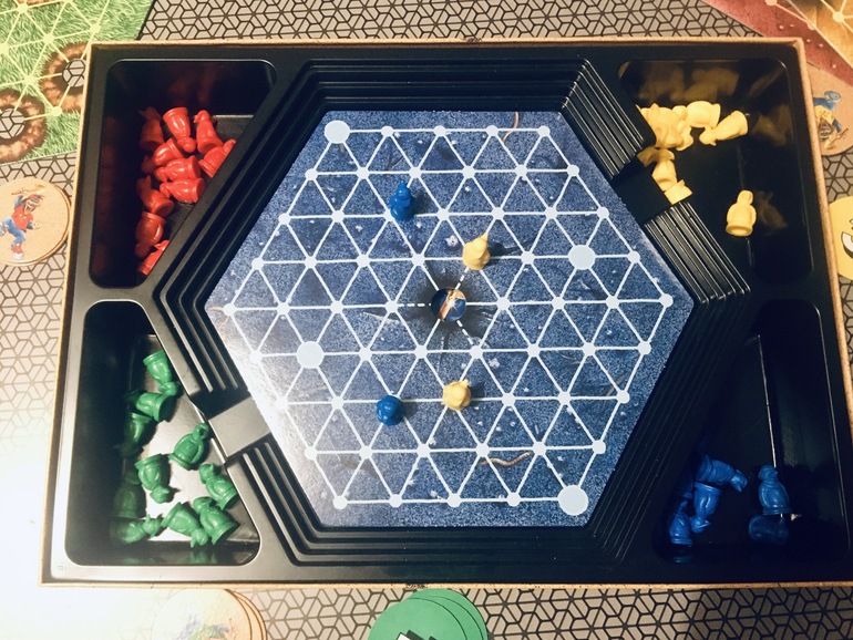 Конечно, я не могла не принести эту игру. По эмоциям для меня она очень схожа с луноботами и пришельцами. И она такая приключенческая, загадочная, волнительная , мальчишеская. Играли вчетвером. Тоже полнейший восторг. И тоже ощущение полной реальности происходящего. Жутко, страшно, интересно, волнительно. Правда, доиграть не получилось, родители забрали своего сына домой. Но я сфотографировала поле с фигурками, решили по просьбе мальчика в следующий раз восстановить картинку и доиграть.