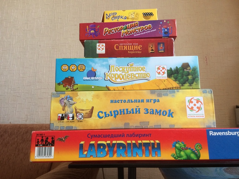 Из этой стопки моя любимая сумасшедший лабиринт.. Готова играть в нее еще и еще, но не с кем(((. Дочка выделяет из этой стопки - ресторацию монстров. Возможно, потому что все остальные игры из этой коллекции старожилы.