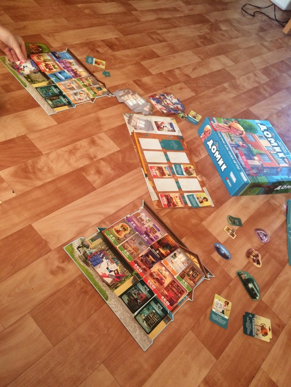 Надо отметить я подарила ее полтора года назад. Мы ее сразу распечатали и отложили даже не помню почему. И вот сколько раз не пытались начать играть- все срывалось. И наконец-то, звезды сложились и мы вчера разыграли 2 партии. Мне очень понравилось. И дочка тоже с удовольствием благоустраивала свое жилье. Победа в обеих партиях осталась за ней. Она ни в какую не расставалась с жетоном первого игра и вовсю мне мешала забрать выгодные комнаты. Как же ей важно побеждать! Когда считаем победные очки , она так нервничает (пытается это скрыть, но пока еще неуспешно))))