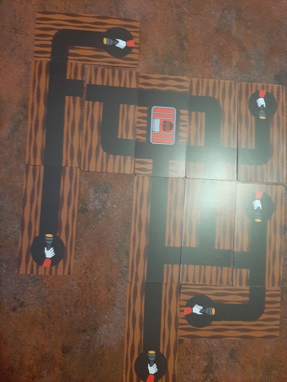Мы пробовали так играть на троих (когда один человек играет за бандита) - выигрывает всегда бандит, не успеваем всё перекрывать. А если по правилам играть - то игра заканчивается очень быстро, примерно так же, как на фото.