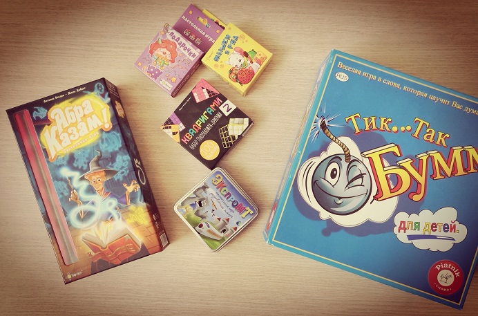 После восторга вызванного у сыновей игрой Экспромт, пришла к понимаю, что у нас значительное упущение в играх разговорного жанра. Не только для дома, но и на игротеку мне нужны такие игры. За советом отправилась в любимое сообщество и вот такой списочек по следам поста составила: Тик-так Бумм для детей, Вообжарий Junior, Alias Junior и Ответь за 5 секунд Детская.