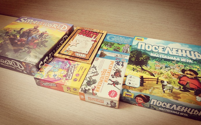Март не обошелся без пополнения настольной коллекции. На фото то, что не только было куплено, но и сыграно (не хватает нового КвестМастера).