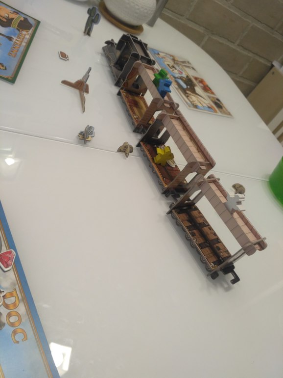 Сыграли вторую партию в Кольт экспресс с мужем, игра ему все таки не понравилась, он ожидал чего то более сложного от игрового процесса, видимо придется ждать когда Дашка до игры дорастет и сможет играть с нами, так как с Аней интереснее все таки в более сложные игры играть.