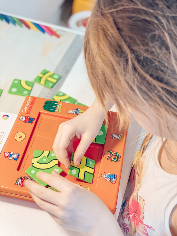Ничего себе, подумала я, дети меня приятно удивили, я таких итогов и не ожидала. До этого я им предлагала поиграть в головоломки и это выглядело так: они брали что-то, занимались этим пока не уставали, минут 20, например, и на этом все убиралось обратно. Через неделю/месяц/три доставалось снова и по такой же схеме игралось. Не знаю почему, но никакой системности у нас не было. Головоломки воспринимались просто как игра, в которую иногда играли дети.