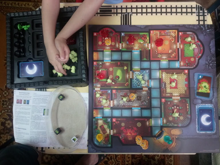 Мы играли, кто в лес, кто по дрова - дочь загрузим за спину мешок с сокровищем поперлась биться с монстрами, не обращая на крики о помощи. Мама пыталась вникнуть в правила, которые папа пытался вспомнить, читая мануал. И тому подобное. Ну, и естественно, мы продули - все 6 гопников нас взгрели. Второй тур был за нами. Мы все действовали четко и слажено. Но тут был нюанс - девчонка просто выполняла наши приказы и потому в третий раунд (мама, увлекшись процессом сразу же предложила еще раз) осталась наблюдателем. И тут есть интересный момент в различии правил ПНП-версии, в которую мы с дочей давно играли от оригинала - при игре вдвоем каждый игрок играет за двоих. В пнп-версии этого не сказано - потому мы и продували раз за разом и потому пнп была убрана в дальний угол. Итак, двое взрослых и вполне состоявшихся родителей грабителей вторглась в дом, награбила все и вся и в двух шагах буквально 6-й демон возродился в адском доме и нас постигла кара небесная. Аминь. Пора на обед. Огромное спасибо личному повару команды: