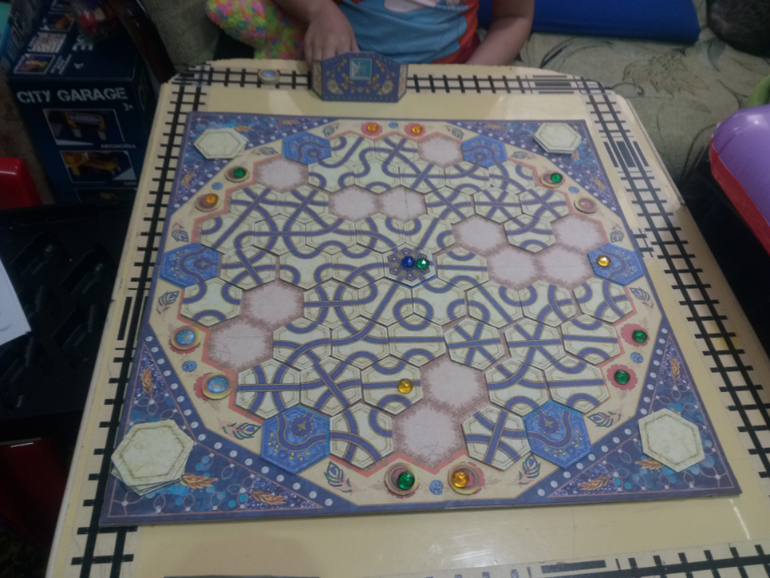 Я достал доче еще один свой долгострой - его пнп я напечатал еще в лихие 90-е года три назад, собрал недавно и оказалось совсем не угадал в размер. И тут, когда я его почти закончил, на "моей распродаже" мне попалась заводская игра! И более того, она досталась мне бесплатно! А все потому, что была полностью неиграбельна - коробка была полна воды. :(((((( Но! Камешки, размеры тайлов (с которыми я угадал 97%!) и органайзер были в порядке. Итак: