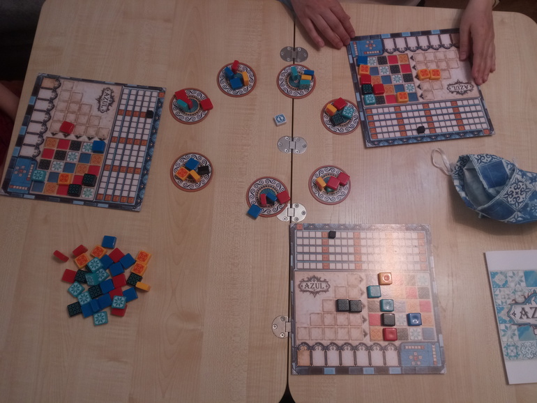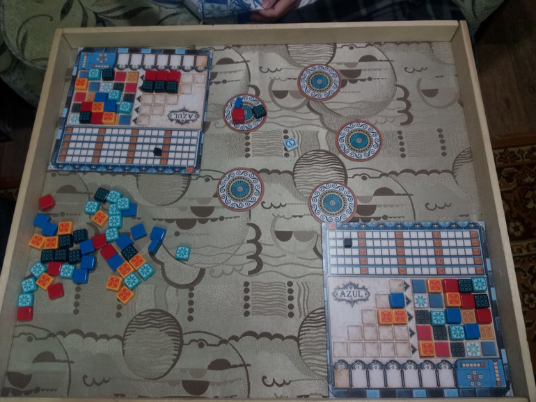 О! Эта стала любимицей. Наравне с Руммикубом, Азулом и Поездом. Прошлой ночью закончили со счетом 206 (я) и 214 (супруга) и то потому что я ошибся с тем, что игрок, выложивший последнюю плитку получает 6 очком. Вот эти-то очки и вырвали у меня победу.
