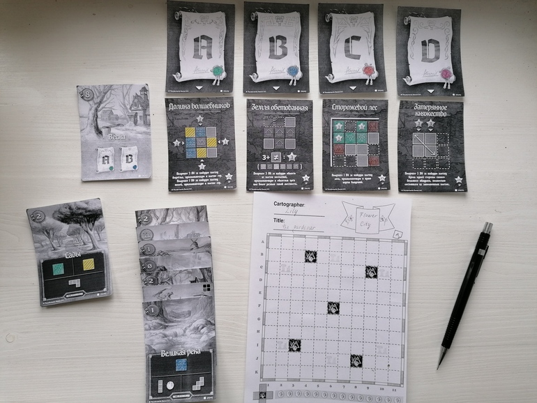 - в игре много промежуточных подсчётов очков, тогда как мне хотелось бы посчитать их только в конце. Тут хочется провести сравнение с Дорожными сетями: там игроки постоянно вовлечены в процесс "строительства" дорог, никакие промежуточные итоги не ведутся. В Картографах же приходиться "отвлекаться";