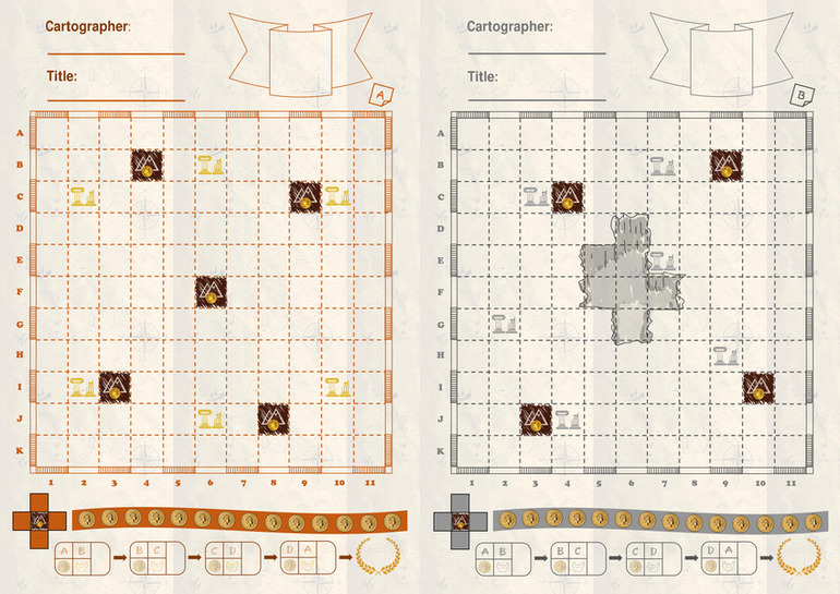 На картах исследований изображены фигуры и тип местности: лес, поселения, поля, водоём. На картах засады изображены монстры. Карты разные: где-то можно выбрать фигуру, где-то - местность. Когда выбор сделан, игрок рисует фигуру с каким-либо типом местности, стараясь выполнить указы, актуальные в текущем сезоне.