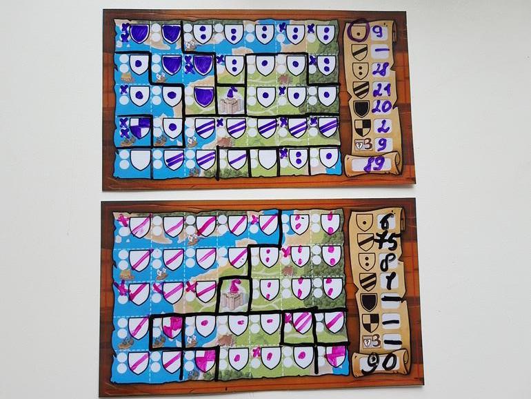 Но я сама виновата, на последнем ходу не заметила, что отдала Ксюше бонус - добавить любому гербу крестик (а дочка давно его ждала, о чем радостно мне сообщила, рисуя тот самый крестик, который принес ей 15 очков 😁).