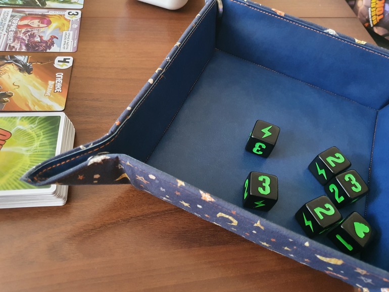 Пока мой пост мариновался в черновиках, мы получили презент от Валентины, дайс-трей, изготовленный её умелыми ручками) Валя, ещё раз огромное спасибо! Теперь нам очень удобно играть в "Повелителя Токио"))) И не только в него). Как только муж с сыном садятся за любую игру где присутствует хоть один кубик,муж отправляем сына со словами "неси нашу коробочку")). Мега удобно и приятно играть с таким девайсом.