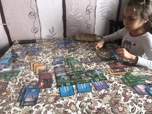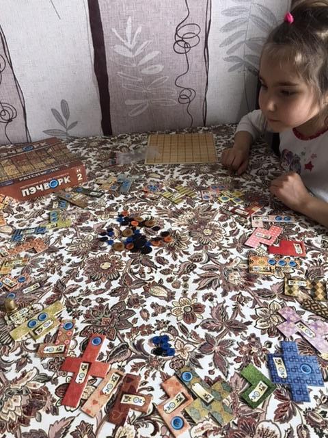 Проигрывая в игры, в которых ей ранее удавалось побеждать, дочка как-то особенно сильно расстраивается... в этот раз она слишком часто брала нужные именно мне тайлы, иногда в ущерб себе). Надеюсь это наведёт ее на мысль о том, что для победы не достаточно только вредить оппонентам 😄.
