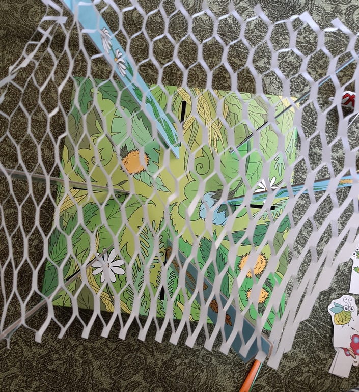 А меня , если честно, она поначалу несколько раздражала, потому как эти стебельки - палки оказались неустойчивы и не очень удобно было натягивать паутинку🙈