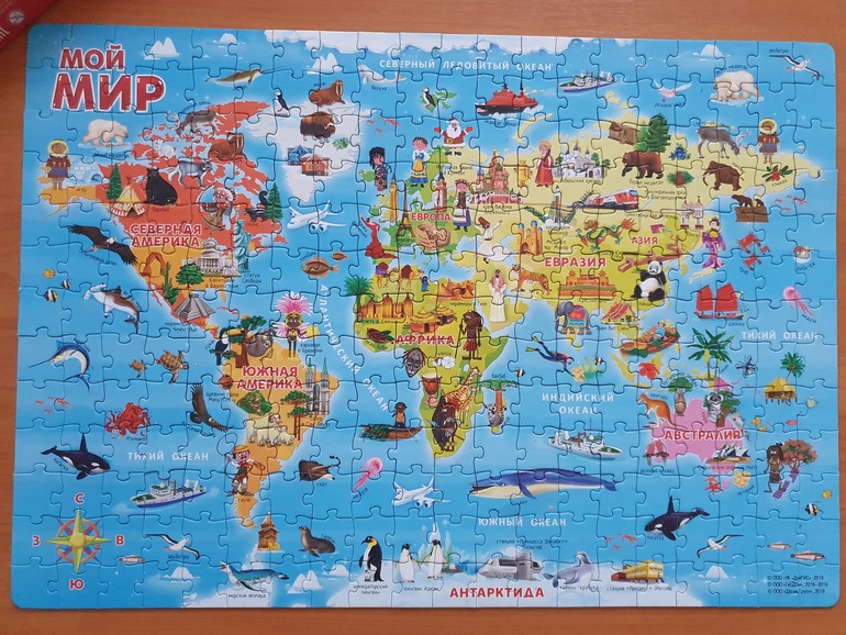 От Геодома пазл появился у нас недавно, собирали его уже один раз на пару. В этот раз тоже собирали вместе. Качество неплохое, что то среднее между Степпазлом и Касторлендом.