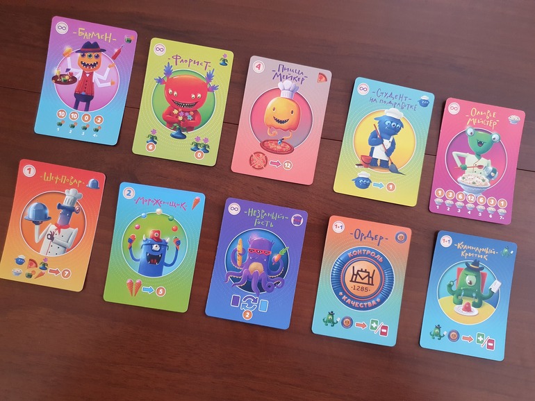 "Ресторация монстров" очень любим, быстрая, азартная, веселая игра. Хорошо играется и на двоих и на компанию. Долго я думала над её покупкой, тема еды в настольных играх мне не очень нравится, но физиономии монстриков меня покорили и к счастью игра появилась в нашем доме. Простые правила, быстрые раунды, симпатичное оформление. Единственное трудновато тасовать такую большую колоду карт). И качество исполнения конечно средненькое.