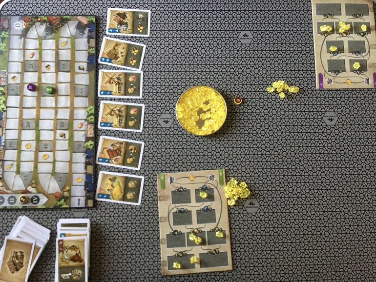 Сыграли с дочкой две партии. И так всё однообразно показалось, постоянно не хватало ресурсов разыграть хорошие карты, максимально набрала 71 балл в этот раз. Сыграли мы две партии, оба раза выиграла я. И такое ощущение, как-будто игра себя полностью исчерпала. Не знаю, может настроение у меня такое было. Артифициум мне нравился и партий мы в него наиграли много, и после одной партии хотелось всегда повторить. Несколько раз мне удалось заработать 80 и 90 с лишним победных очков. Затем я каждый раз стремилась к подобному результату, но приблизиться к подобному итогу не смогла. Видимо, тогда мне очень повезло с выходом карт в самом начале. А вот дочке Артифициум продолжает нравиться, она частенько сама предлагает в него поиграть. Ориентируется дочка довольно неплохо уже. Выигрывать не получается, но в этот раз набрала рекордное для неё количество победных очков: 62 в обеих партиях. Да и сыну интересно, а он сейчас не в каждую игру соглашается составить компанию.