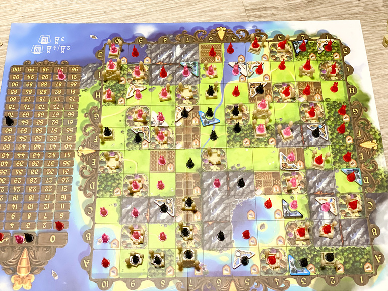 Длится игра довольно долго, мы получается играли пока дочь спала, и потом доигрывали, когда она проснулась. Что не понравилось, так это подсчёт очков. Везде про это пишут, но я не обращала внимания, так как обычно получаю удовольствие от подсчёта, но здесь это занимает много времени и жаль, что оно тратится не на саму игру, а на подсчёт. Кроме того нужно быть очень внимательным, чтобы не пропустить элементы для подсчёта, а ошибиться очень легко. Много раз мы пересчитывали очки, чтобы перепроверить себя.