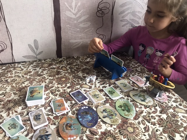 Играли вторую партию за март, первую мы продули, но сегодня смогли победить!! Дочка обожает эту игру, но самое привлекательное для неё - это новые карты, наклейки и коробочки!))