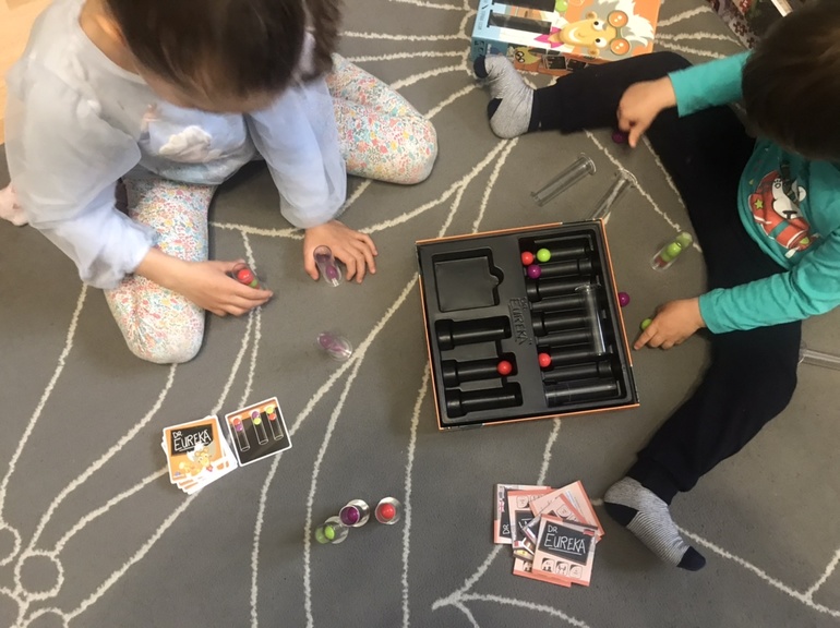 Игры на баланс и ловкость - дочкино слабое место. Доктор Эврика бросили после 3 проигранных карточек.