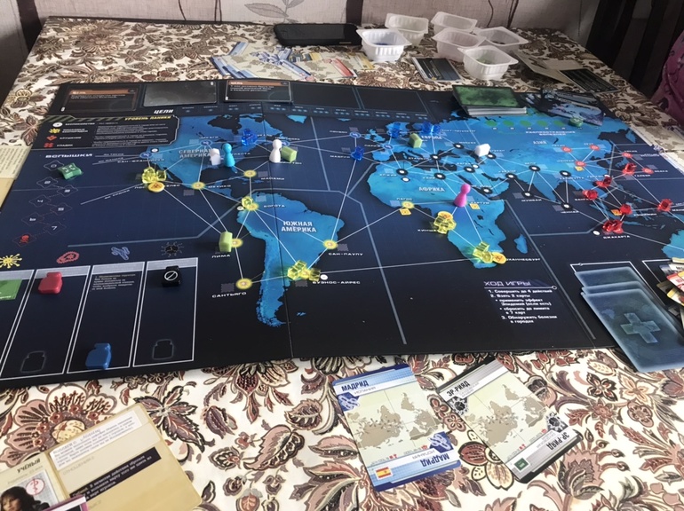 Сегодня мы играли втроём. Со мной дочка играть не захотела. Продолжили нашу кампанию в Пандемию Наследие