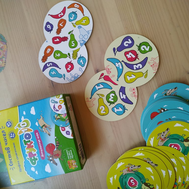 Уже поздновато нам в нее играть, отлично должна зайти перед школой. Так что отложила в коробку на вырост. Кстати, они ее немного изменили. Там появился вариант игры - состав числа пять. Раньше этого не было.