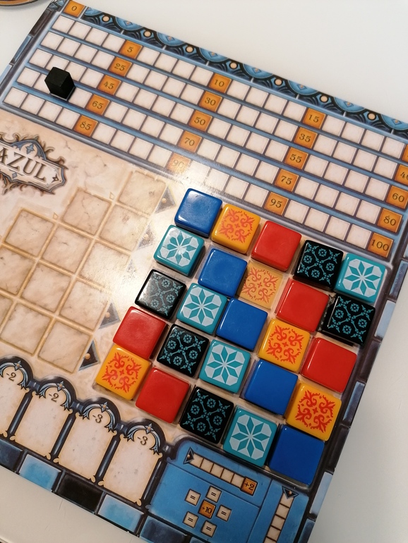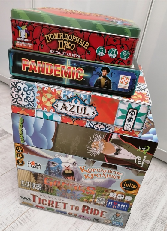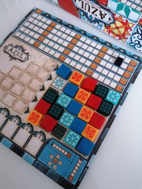 Дальше был мой любимый Азул. В понедельник нам впервые удалось сыграть в игру вчетвером, с бабушкой и крестной. И мне совсем не понравилось. Слишком непредсказуемо на четверых, сложно придерживаться какой то стратегии, увеличивается время ожидания хода, плиточки после двух раундов опять скидываются в мешочек а после и вообще после каждого. В общем совсем не те эмоции.