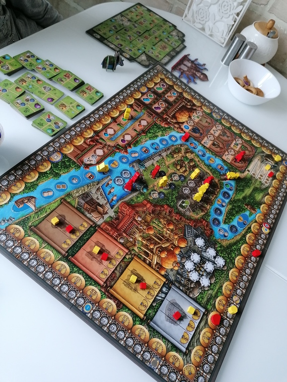 Сегодня достали Раджей Ганги, тоже наша новинка, за май сыграно около пяти партий. Очень нам нравится игра, красивая, яркая, какие компоненты классные! Ну и главное сам игровой процесс увлекает, есть множество возможностей развития, партии получаются разные.