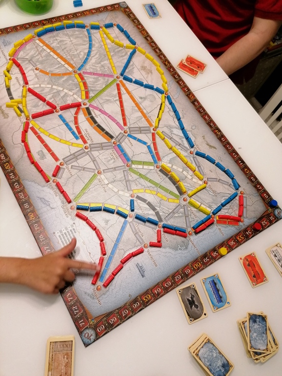 Очень насыщенная партия получилась, все шли рядом по очкам, у нас с мужем пересёкся маршрут, я раньше успела занять нужный и ему и мне перегон.. В итоге все решил самый длинный маршрут, у меня 43 паровоза, у мужа 42. И я выиграла! Но дочь на втором месте и муж на третьем!