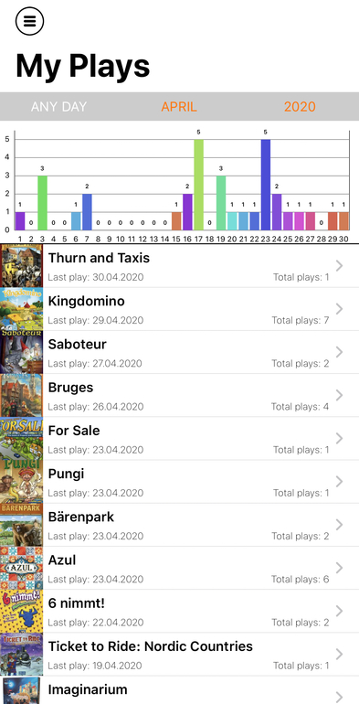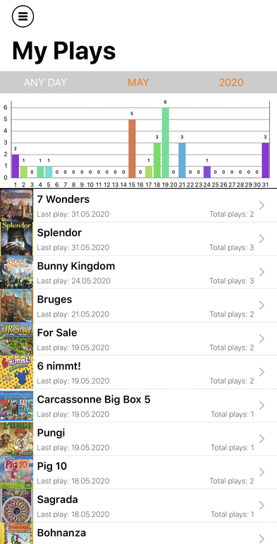 Итак, начнём с общего количества партий. По моим личным ощущениям мы вообще перестали играть. Зато стали успевать гулять два раза в день, до сна дочки и сразу после, а во время сна приходится готовить и прибираться, а раньше мы использовали это время для настольных игр. Так вот, что касается партий, статистика тут такая: